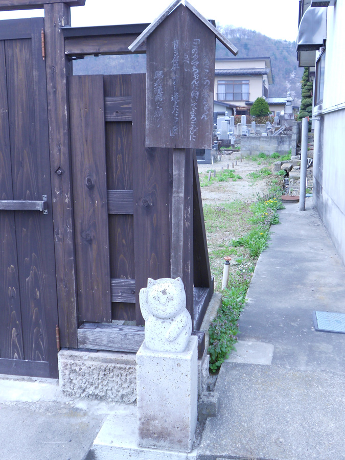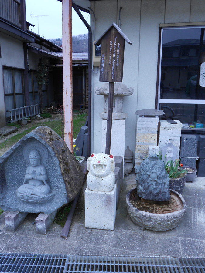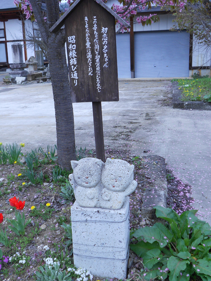猫の置物は道沿いにお寺がけっこうあるのでそれ関係かも…?