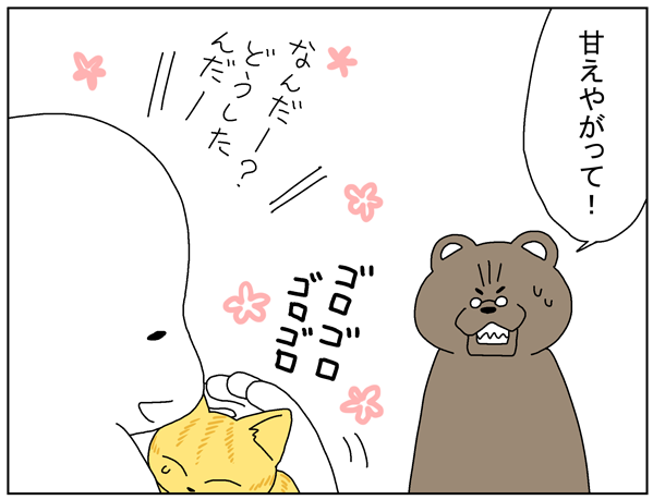 ただ取るのだと大人しくしてないので4コマ目では首根っこ掴んでます。