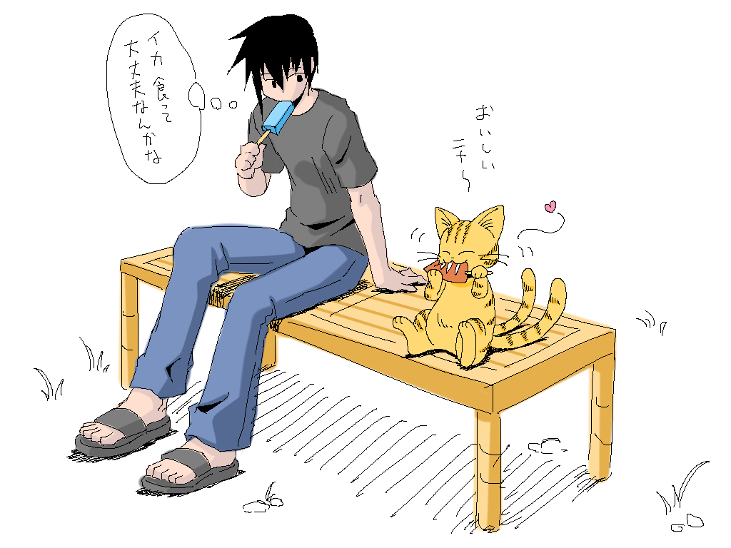 1枚目の猫キャラと猫又がイカ焼き食べてるのは、ひめこがイカ好きだったからですねー。