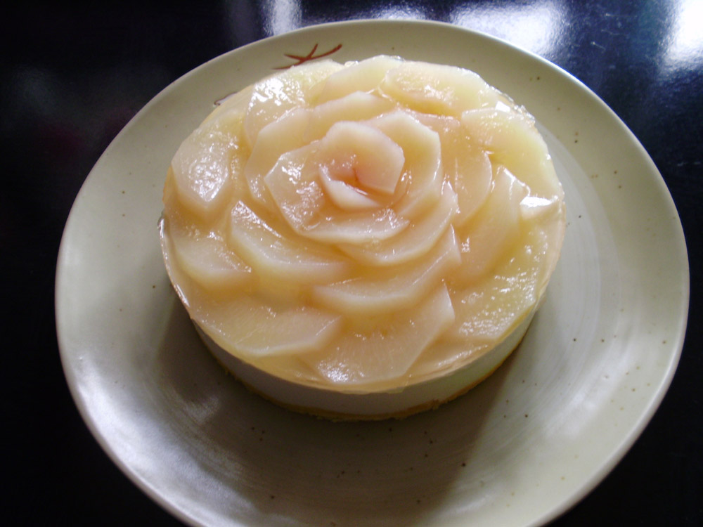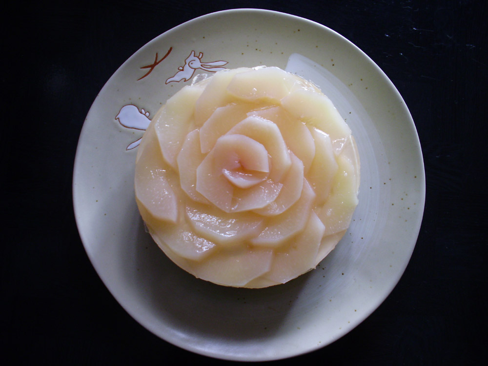 今回はそれを使って桃のレアチーズケーキを作成。