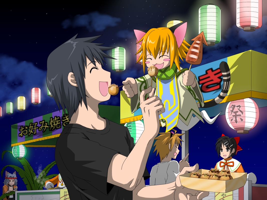 1枚目の猫キャラと猫又がイカ焼き食べてるのは、ひめこがイカ好きだったからですねー。