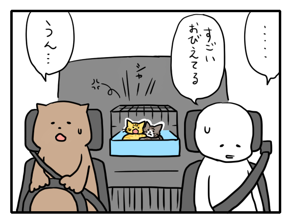 カゴの中で2人でしがみついて怖がってるんだけど、