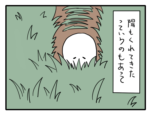 落ちた場所も草の上じゃなかったっぽい…。