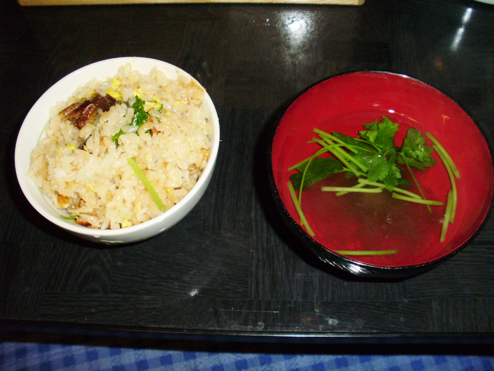 ウナギの混ぜご飯とお吸い物。