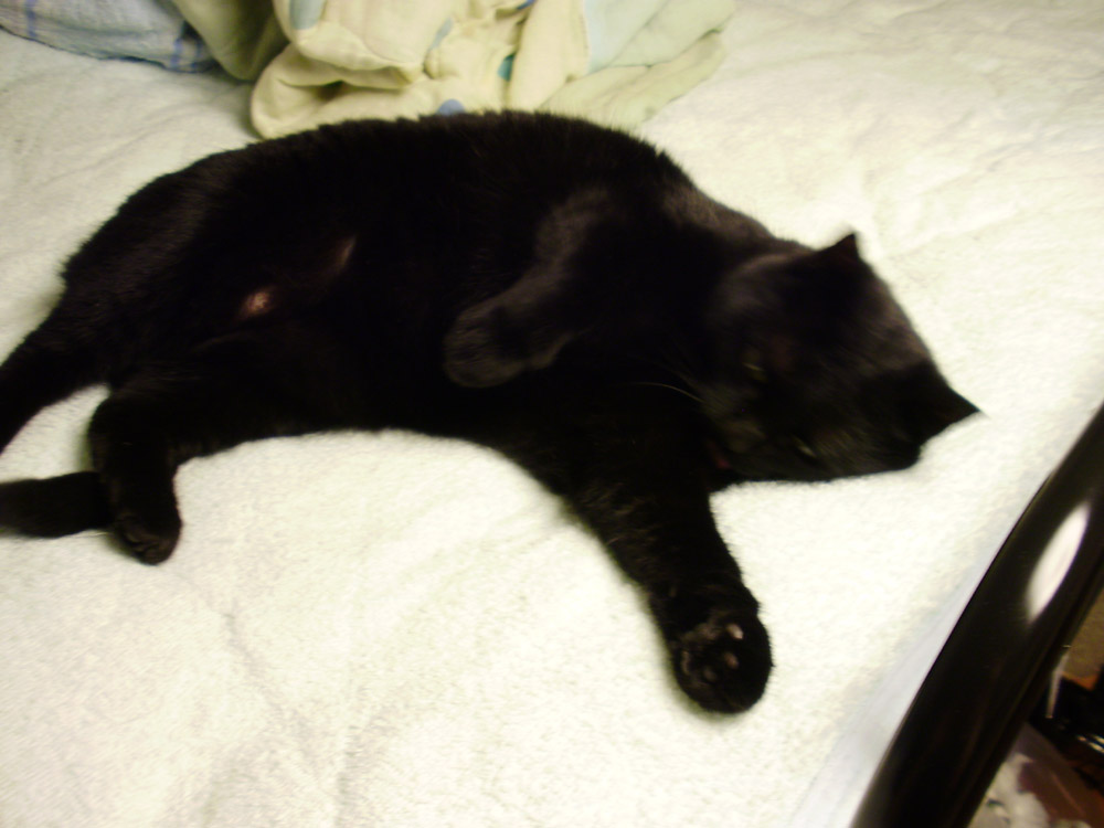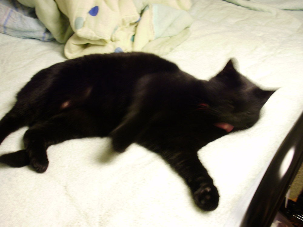 脚の方を見たら寝ていたけど動かない。