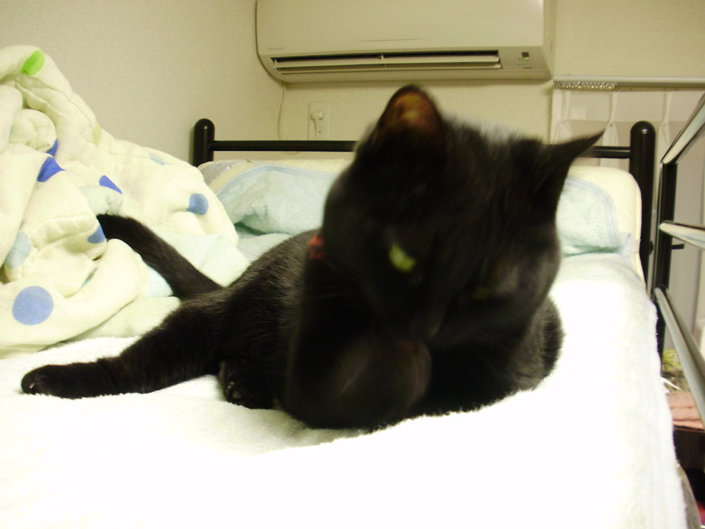 クロがエアコン付けるとベッドに行くようになりました。