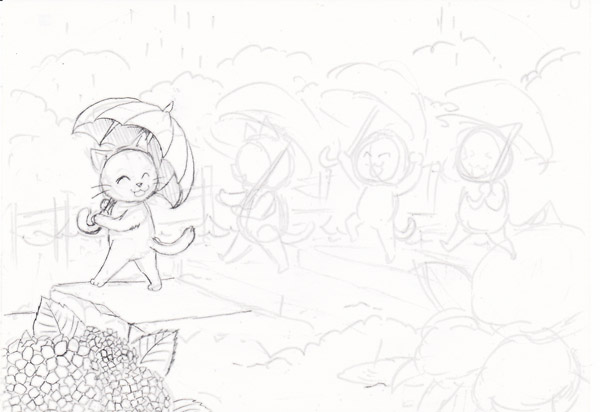 一部だけ修正して濃く描いてみたけれど、猫を可愛くキャラクターっぽく