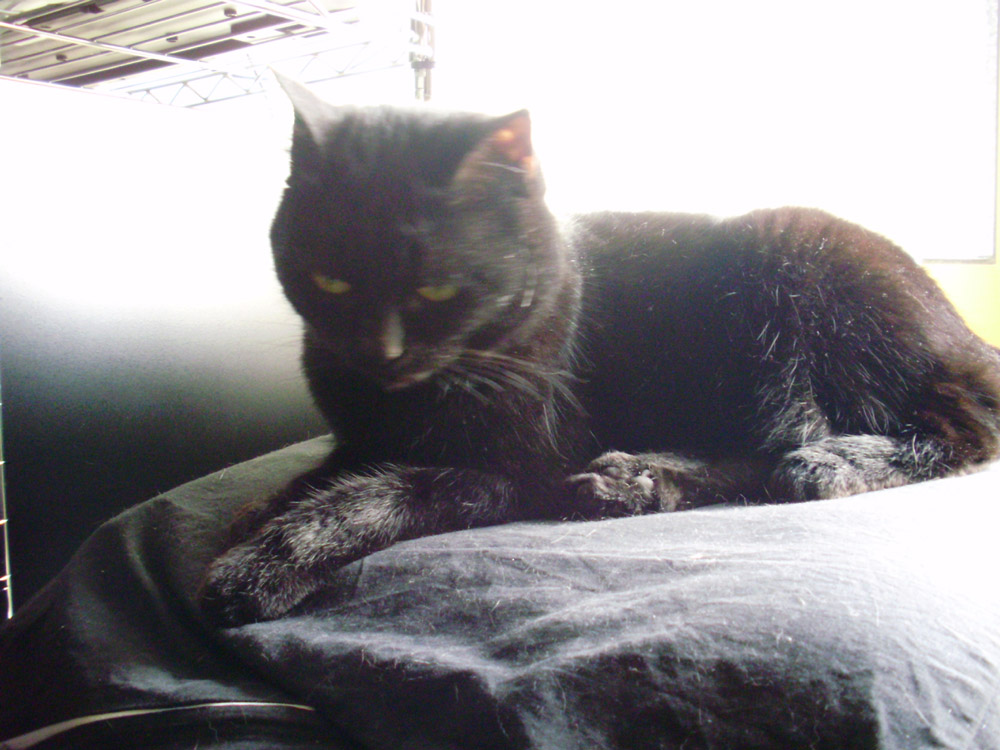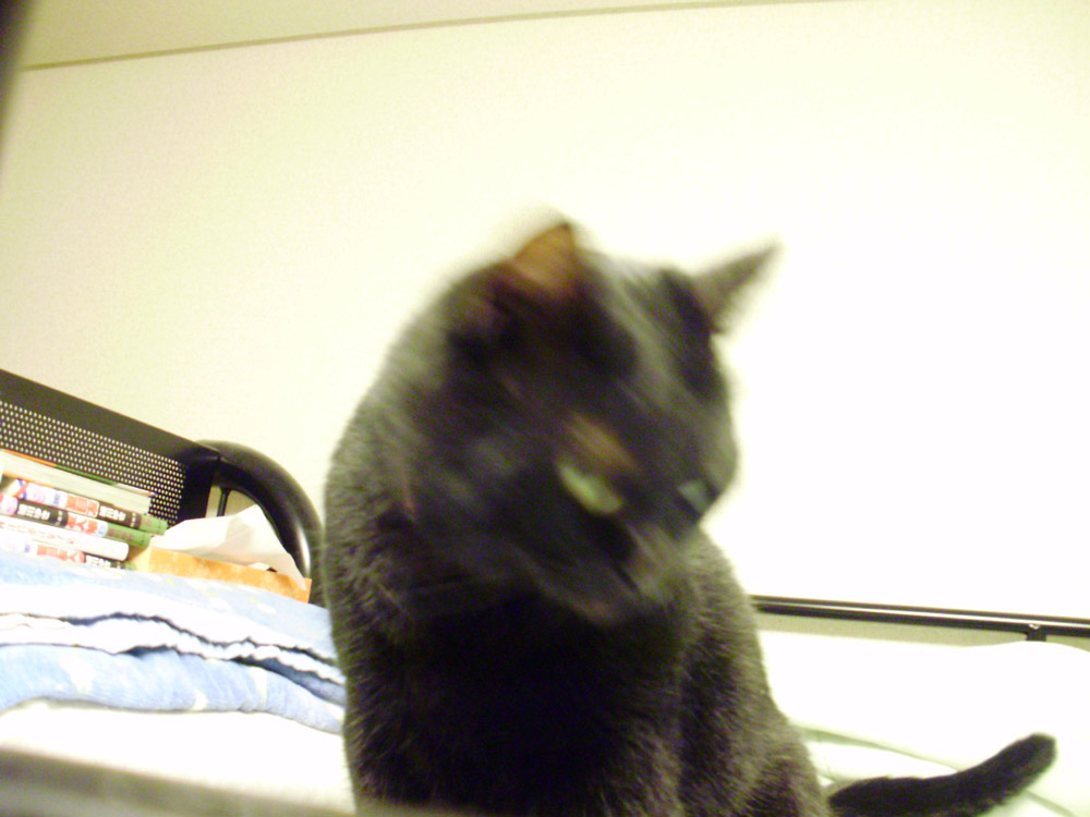 エアコンつけた途端クロがベッドに登っていったので撮影しようとしたら…。