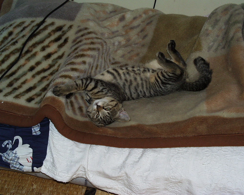 すぐ撮影したかったんだけどクロが布団の中にもぐりこんでお休み中だったので出てくるまで待ってました。