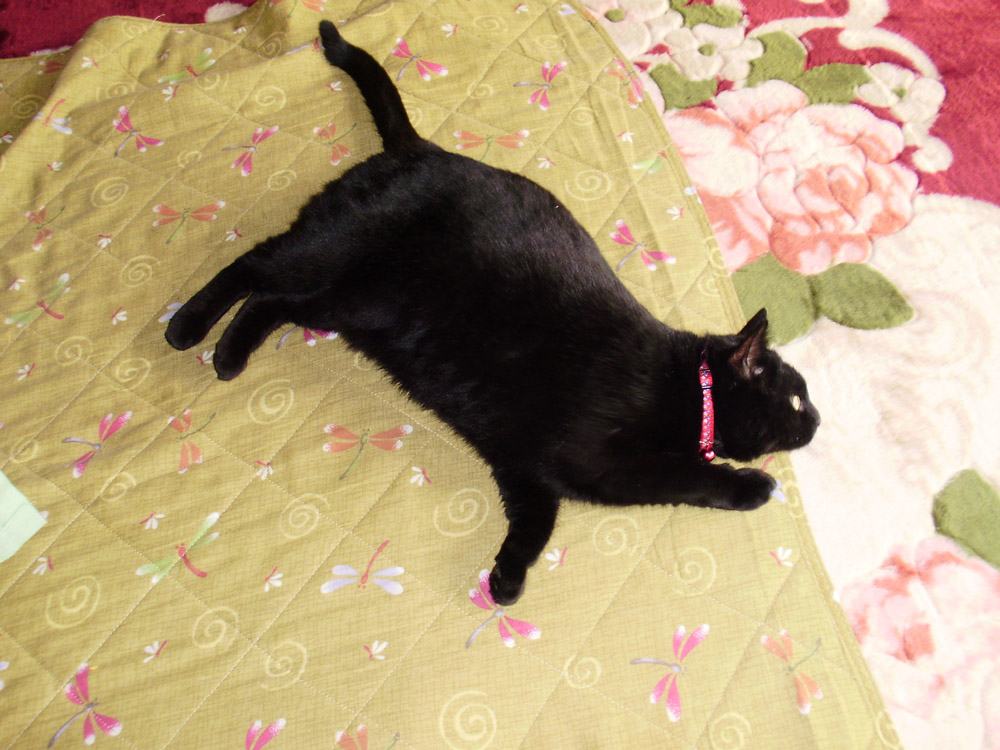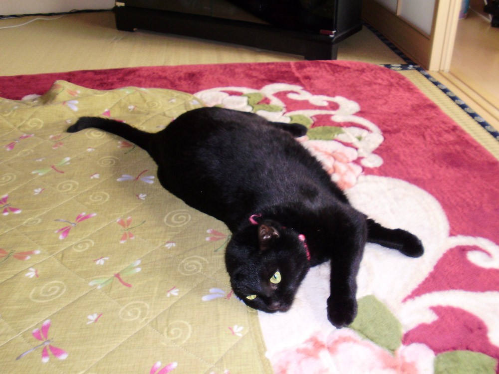 いつもの場所で日光に当たりながらくつろいでいたクロを撮影。
