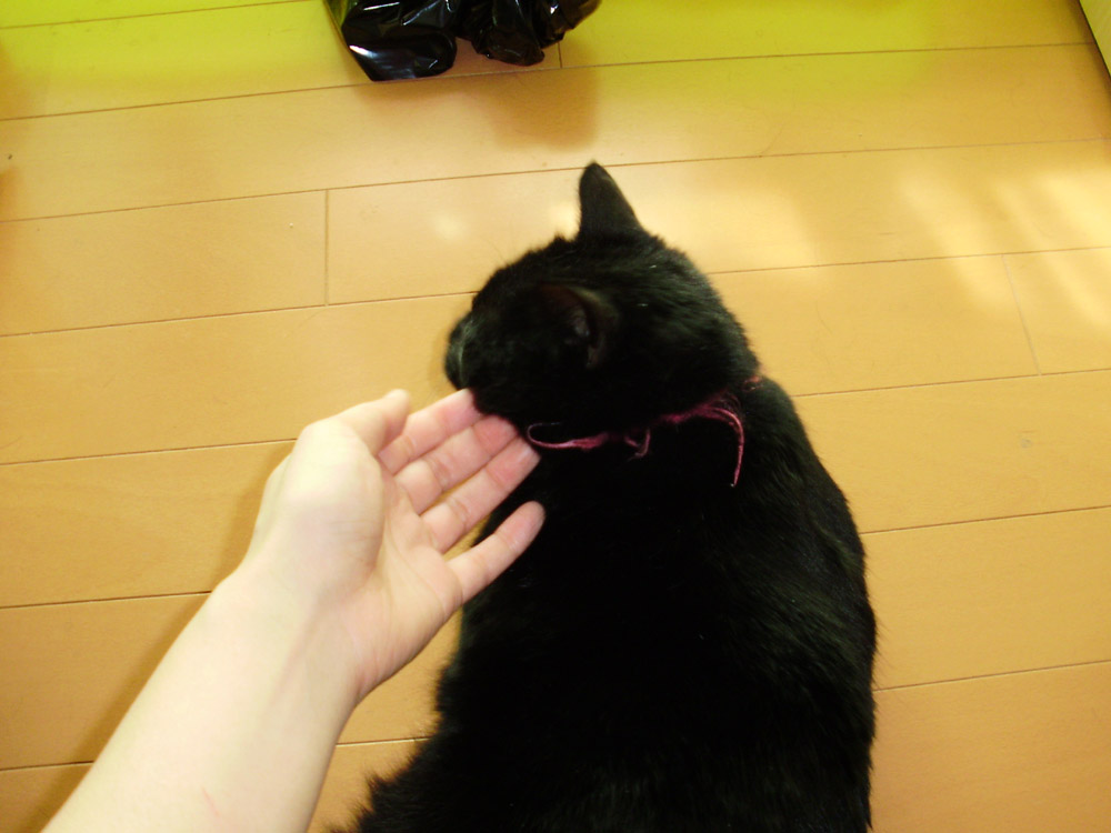撮影してたら床に下りてしまったのでオケツをなでなで。