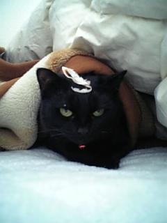 オヤツオヤツ言って呼んだら布団から出てきたところ。