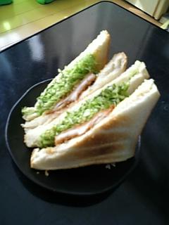 今日の朝飯キャベツとカツのサンド。