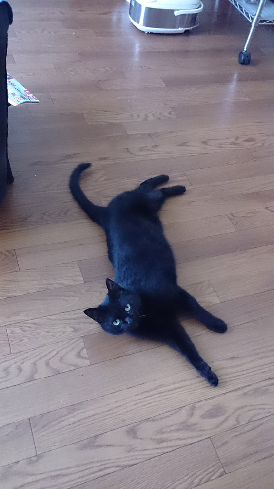 暑さで床にゴロゴロする事が多くなったクロ。
