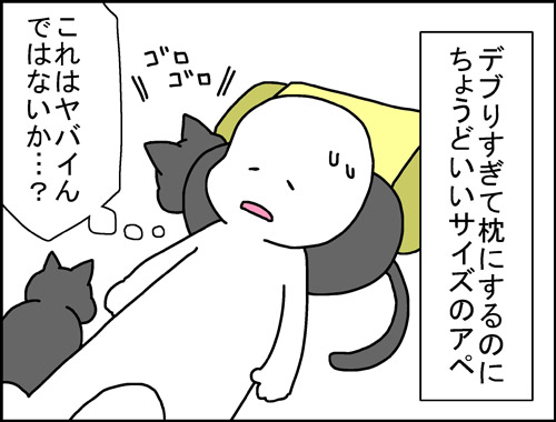 枕にされてるのにゴロゴロ言ってるアペ。