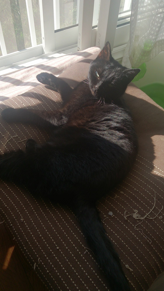 いい場所を見つけてくつろぐクロ。