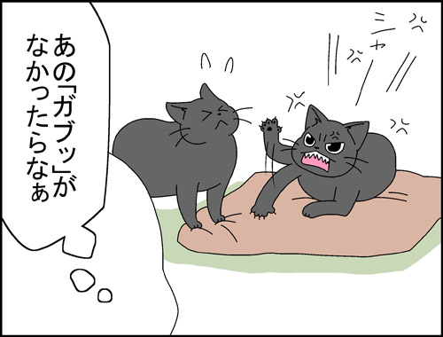 クロはとても迷惑そうです。