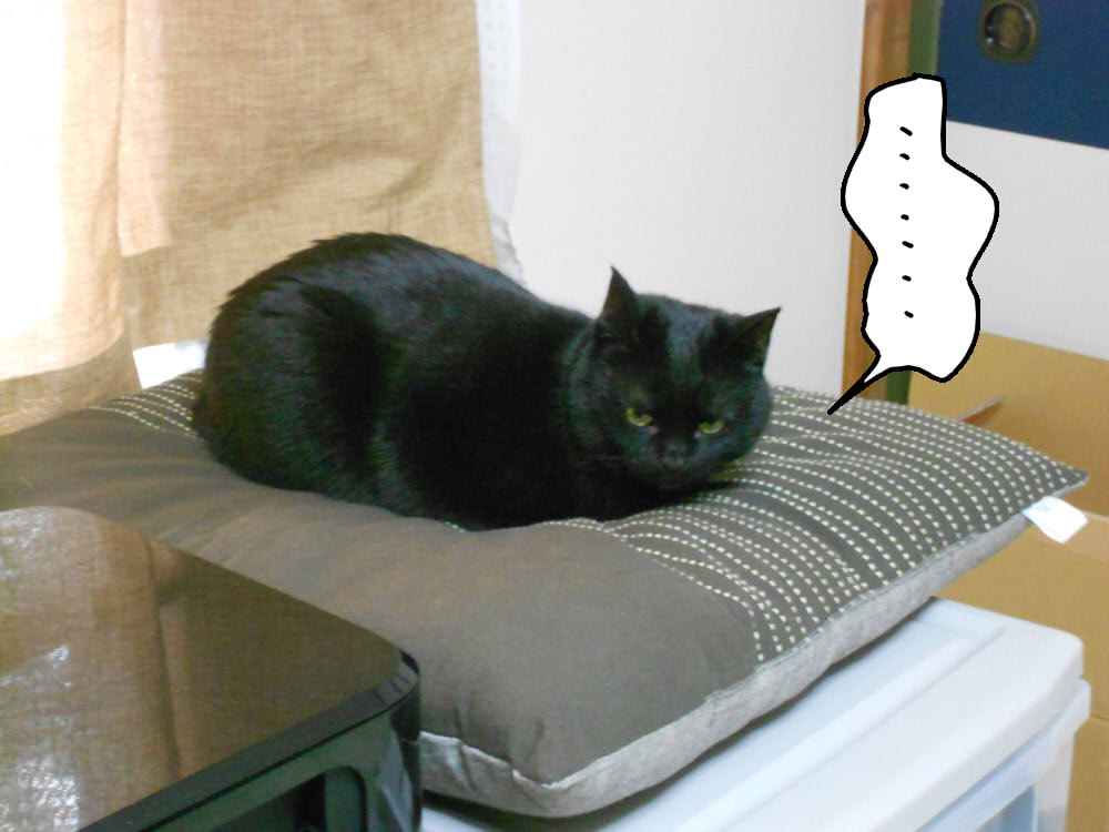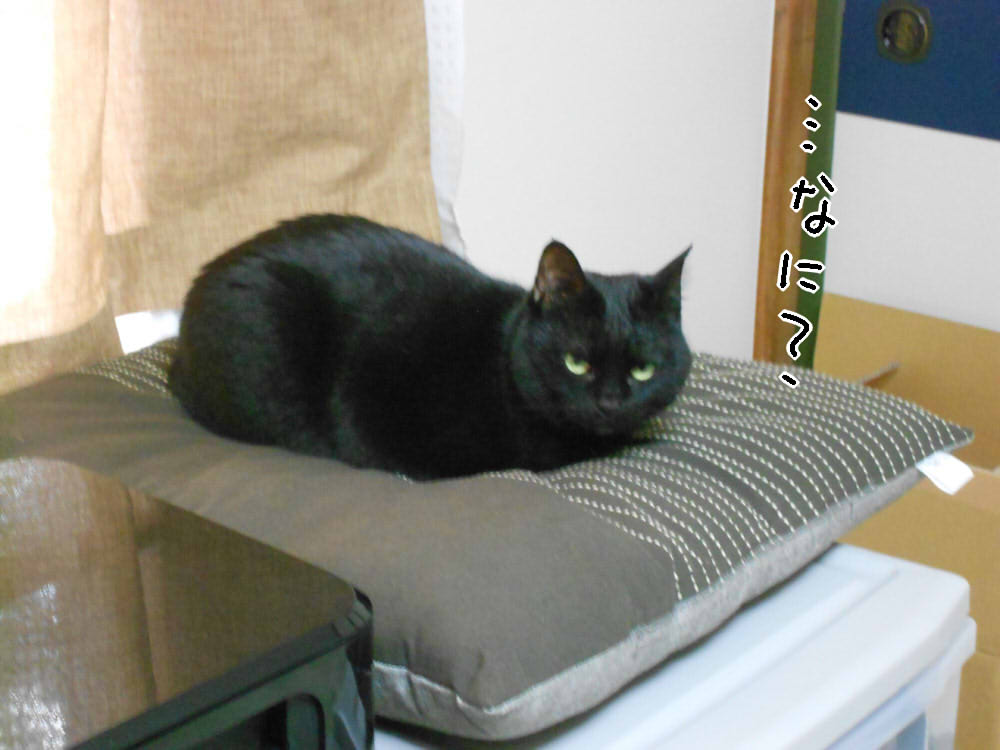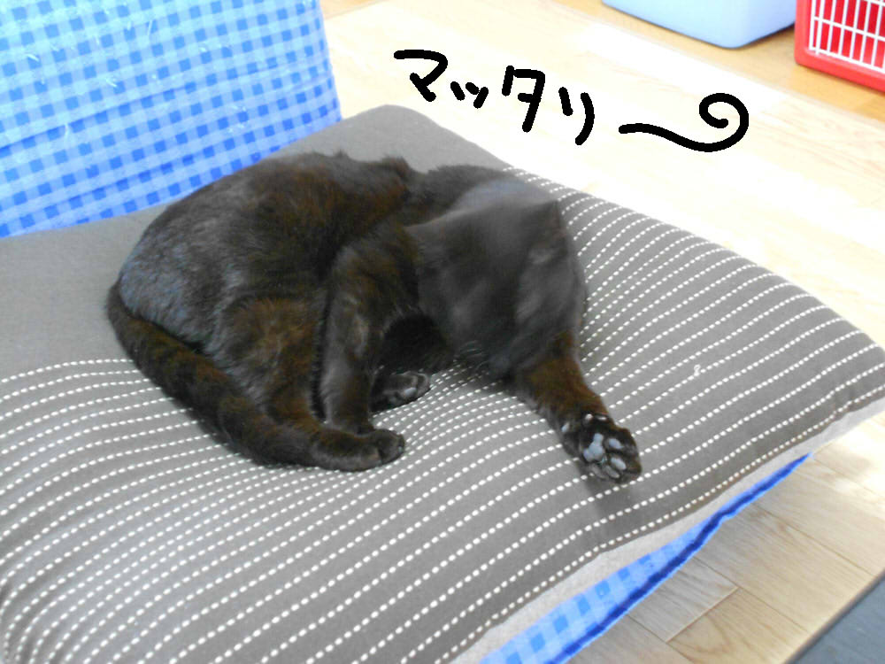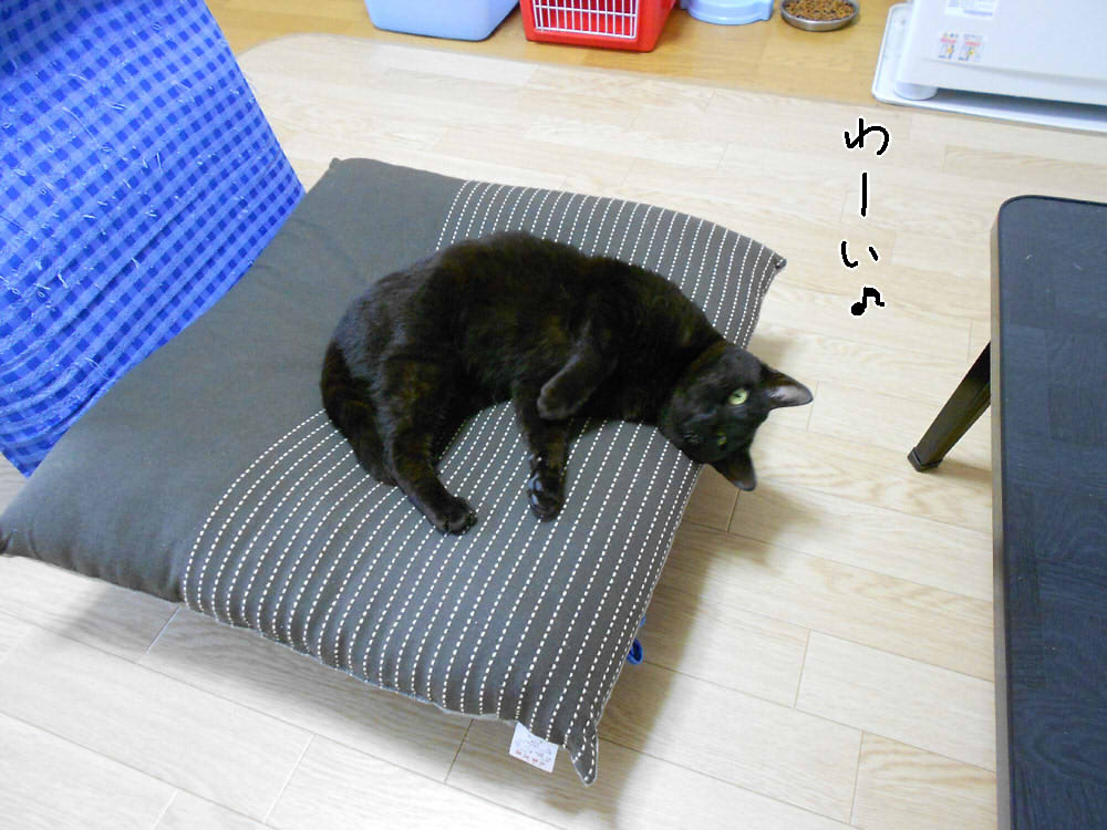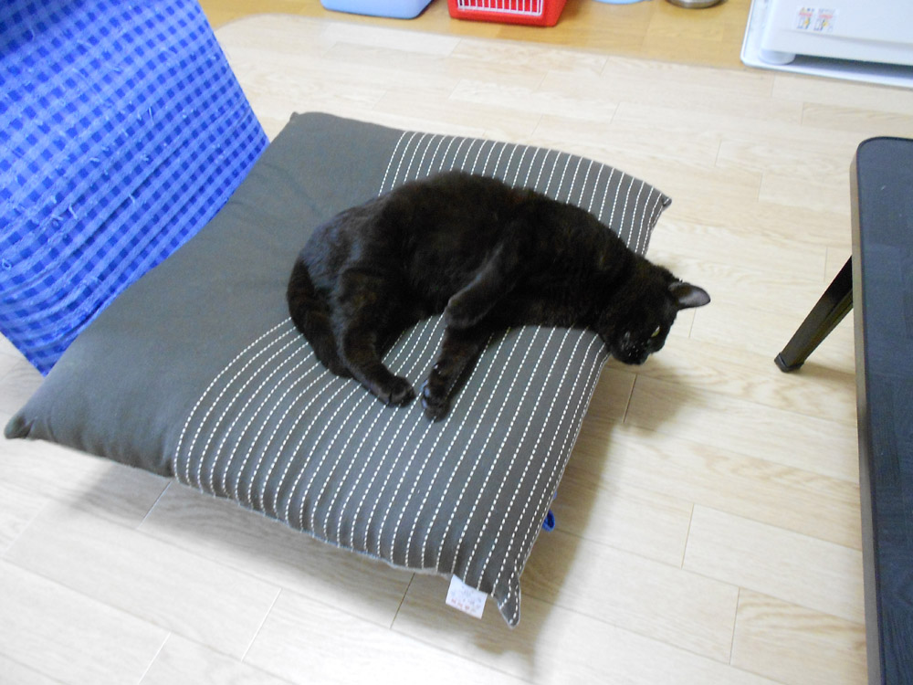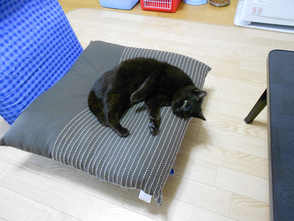 保護猫がフリーになってから、座布団の上で寝たり