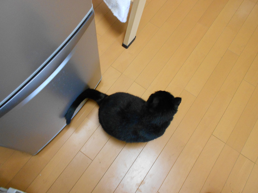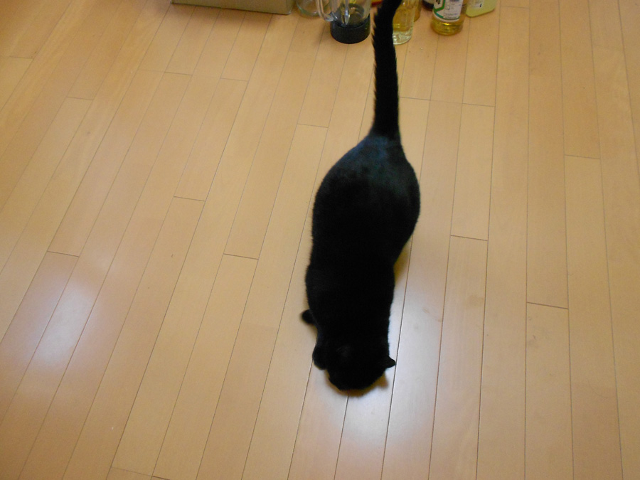 キッチンで作業してるといつもついて来るクロ。