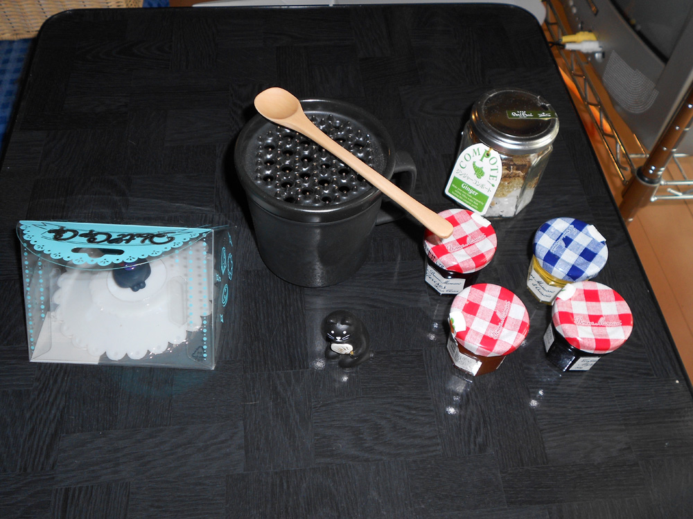 猫グッズとマグカップ、それからジャム。