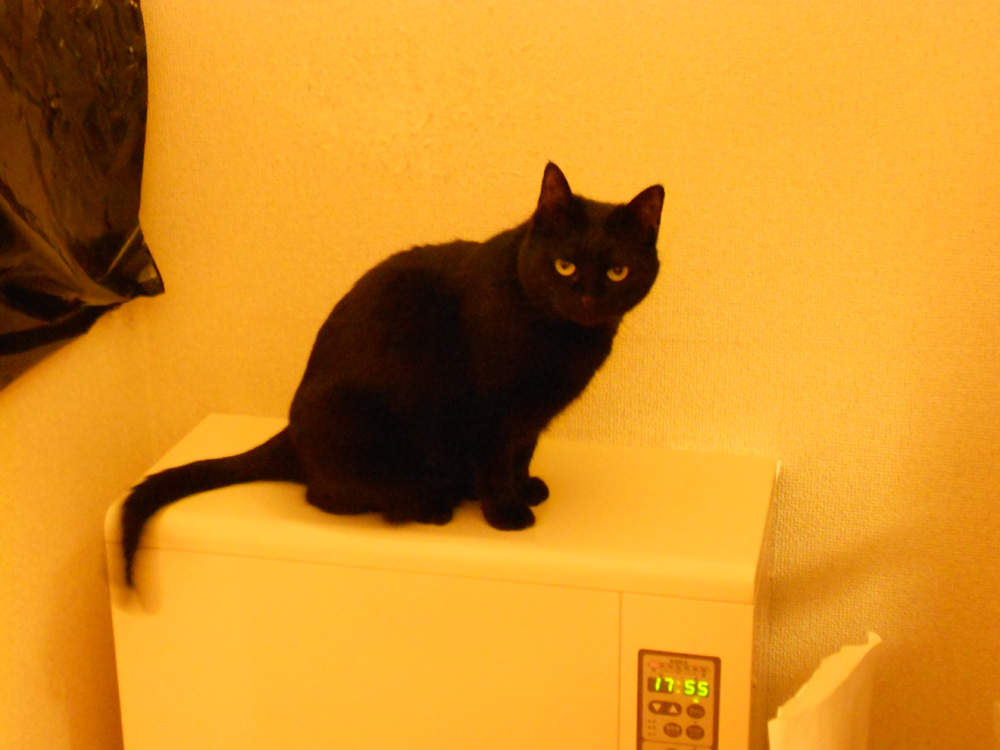 ちょうど黄色で黒猫。