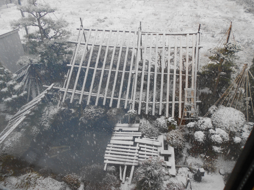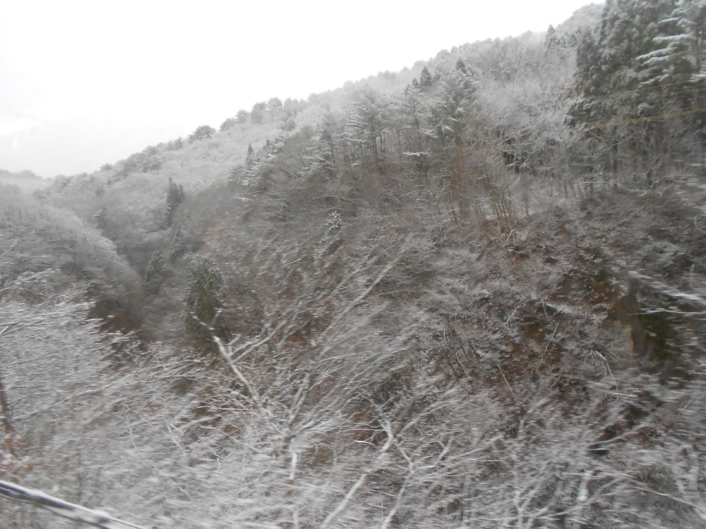 県境の山が雪化粧。