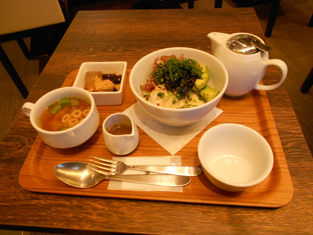 鮪とアボガド丼のセット。