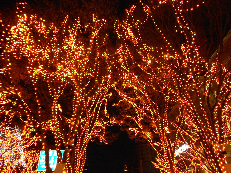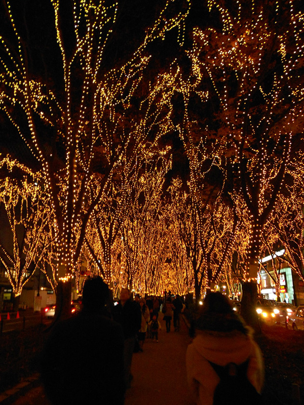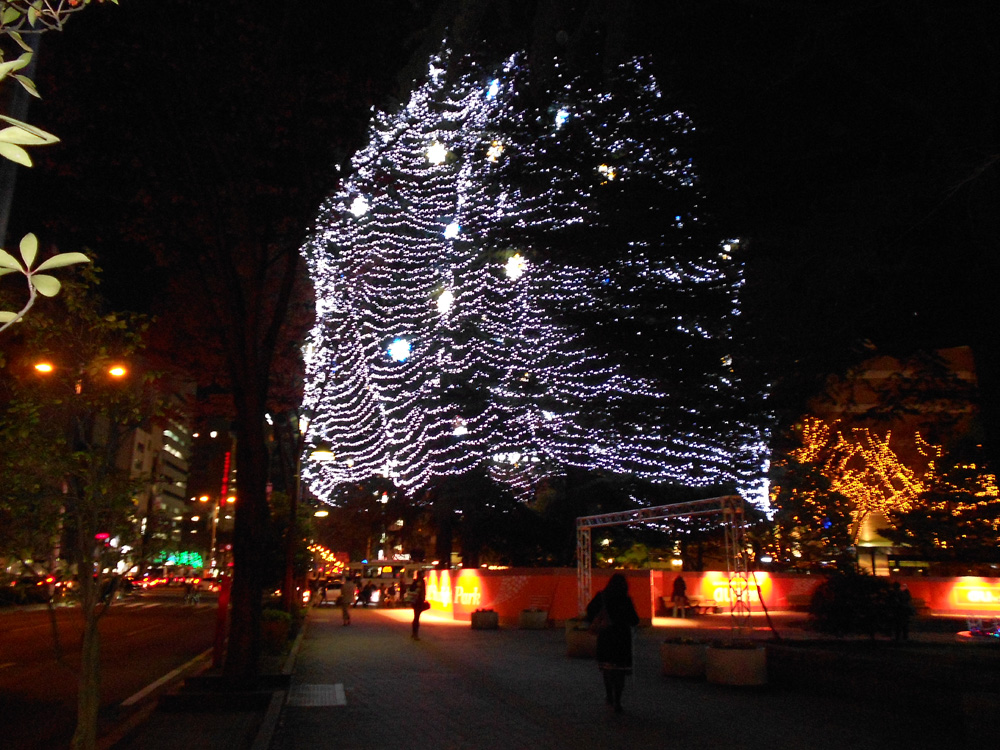 地下鉄出たらライトアップされた木が見えてダッシュ!≡≡≡ヘ(*゚∇゚)ノ<ワーイ