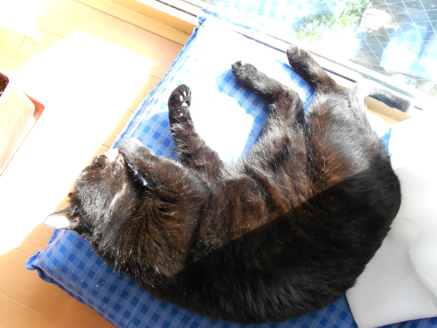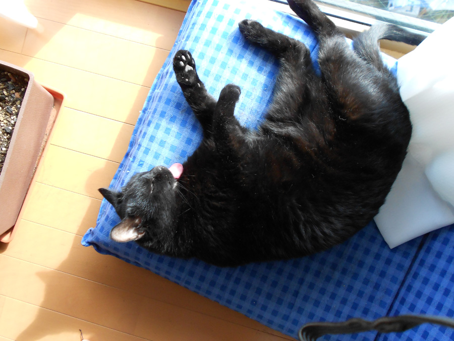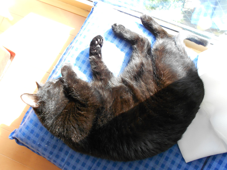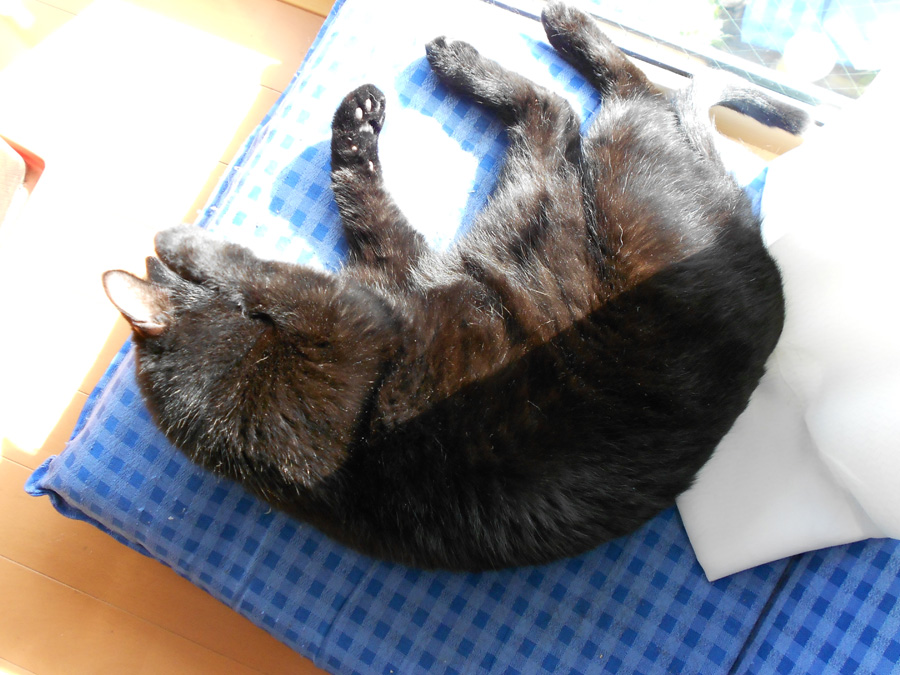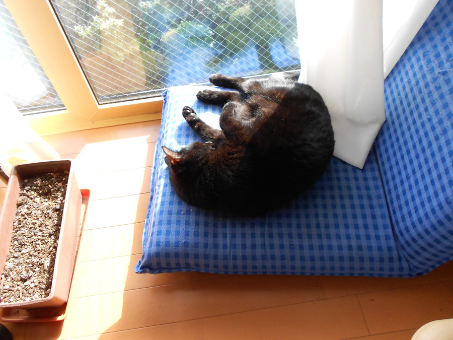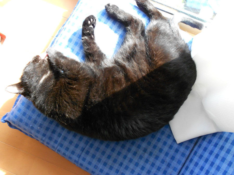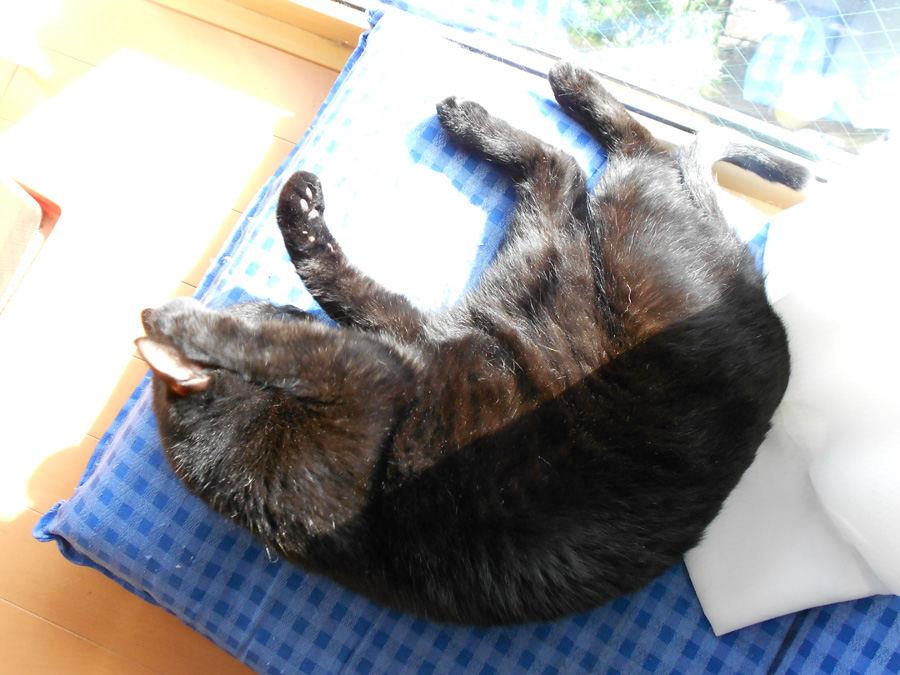 窓際に置いた座椅子で気持ち良さそうに寝てます。