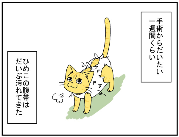ひめこの時は抜糸に行く数日前に腹帯を取ってしまったのでした。
