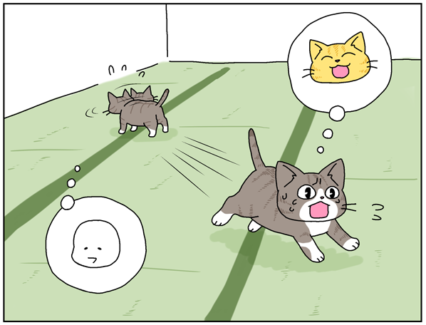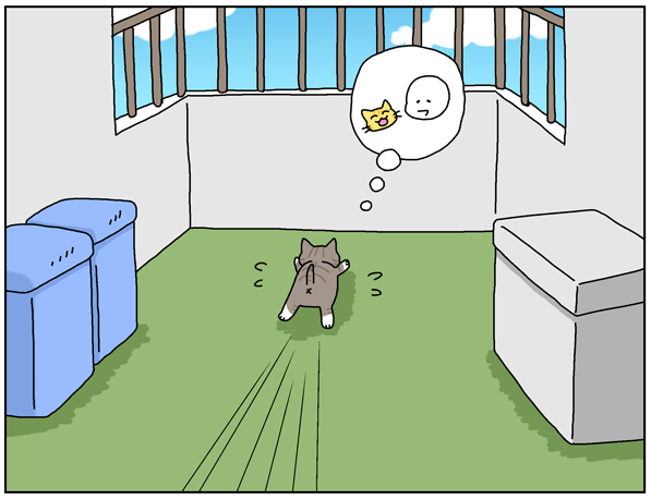 ひめこや自分の姿が見えなくなると鳴きながら探すリコ。