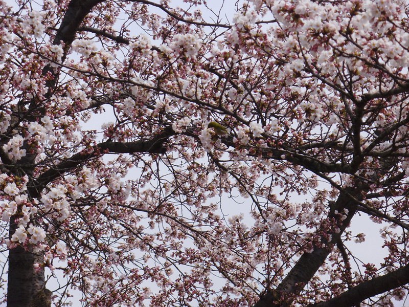 なにやらスズメより小さい鳥が…思ったらメジロでした。