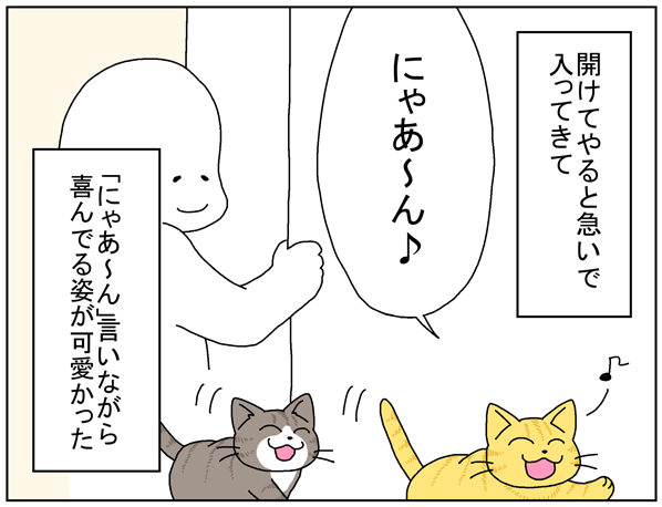 「にゃあ~ん」が「わあ~い」に聞こえて可愛かった。