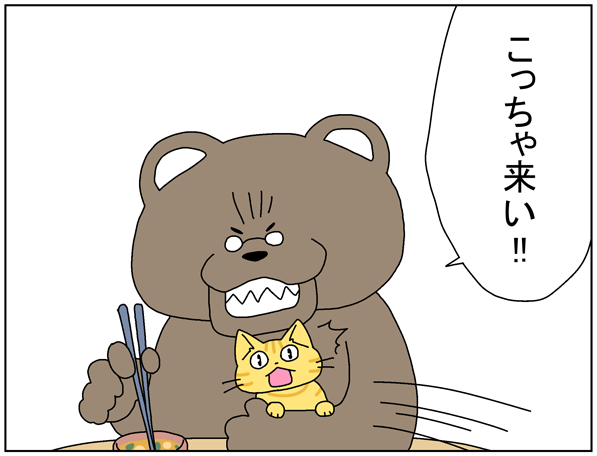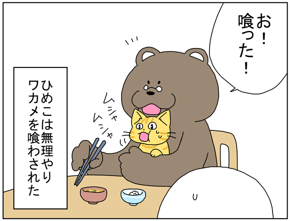 箸で叩くの次は自分の箸で無理やりワカメ喰わせる。