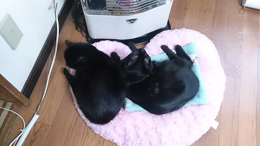最近ではストーブ前でくっついて寝てる事も見られるようになりました。
