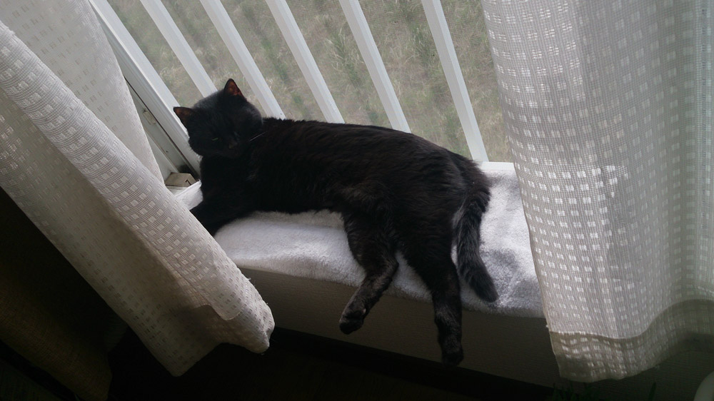 窓を開けても寒くない日が続くようになり、クロも気持ち良さそうに昼寝してます(´∀`)