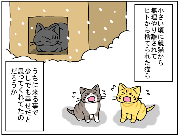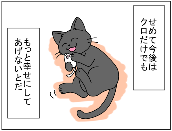 そこから立ち直れるかどうかわからないけど、生き残っているクロを可愛がりつつ、愛猫や今までうちに来た子の絵や漫画を描きつづっていこうと思います。