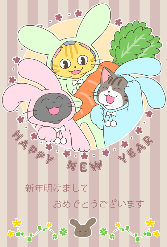 ウサギのきぐるみ着てる猫らを描きたくなりました。